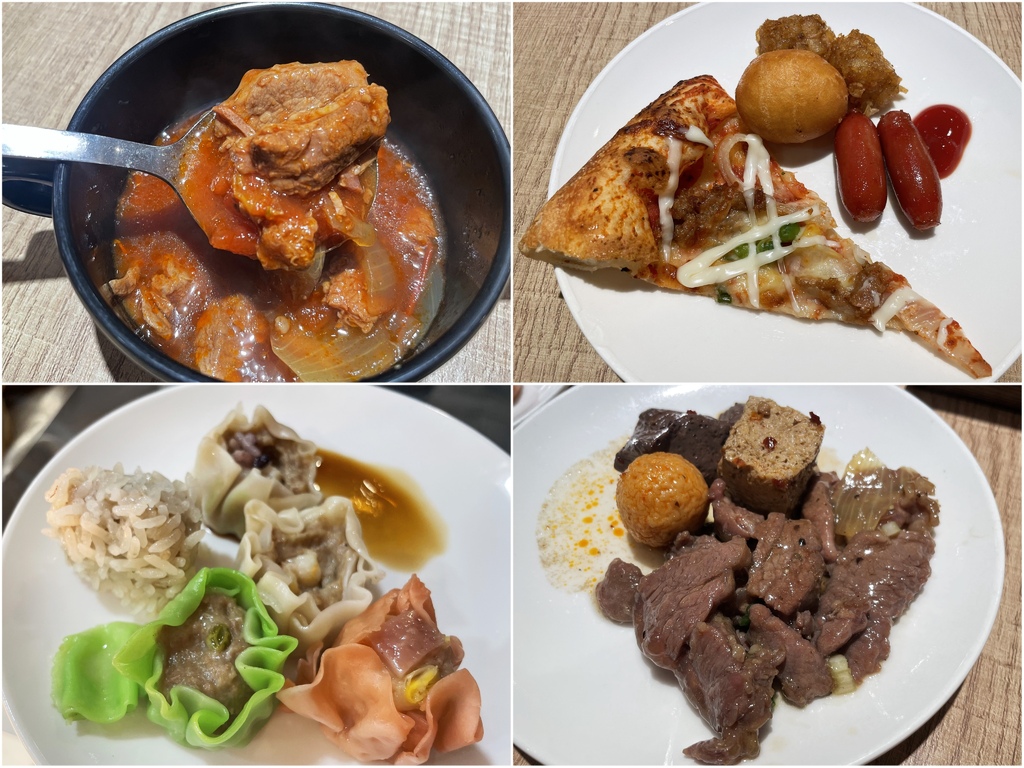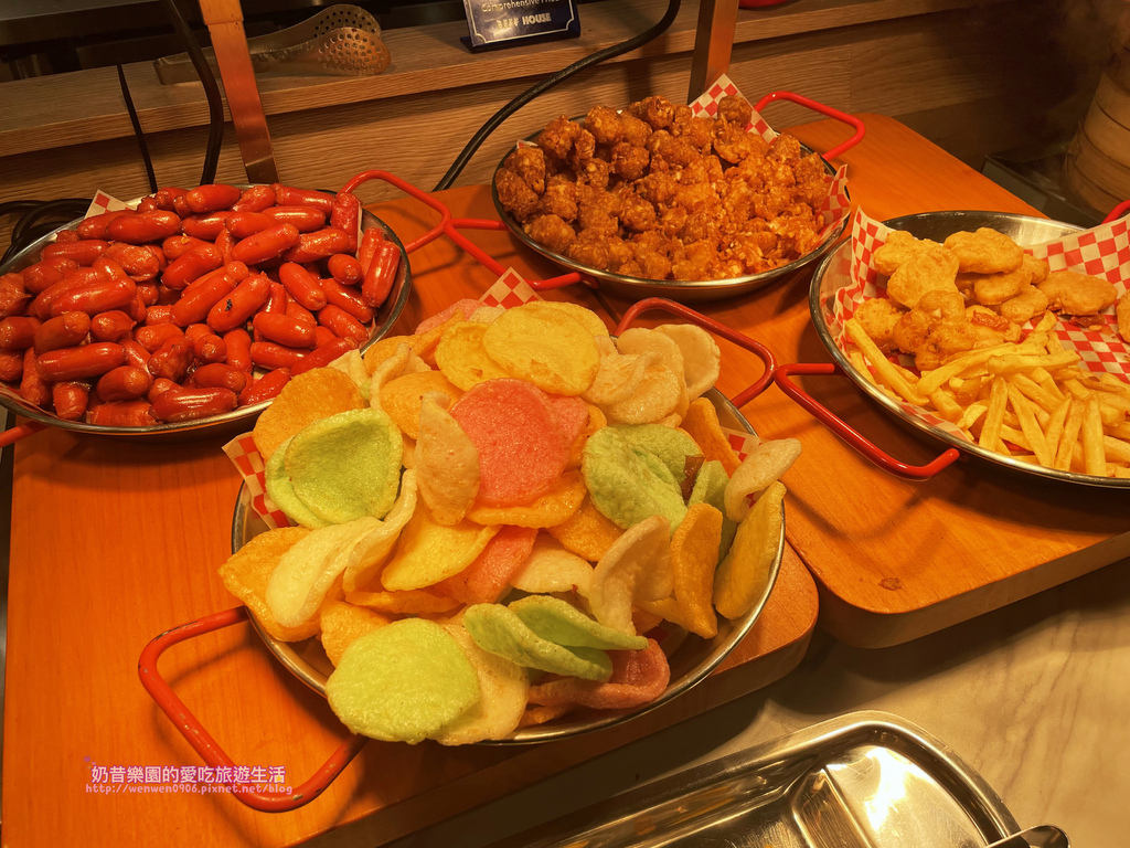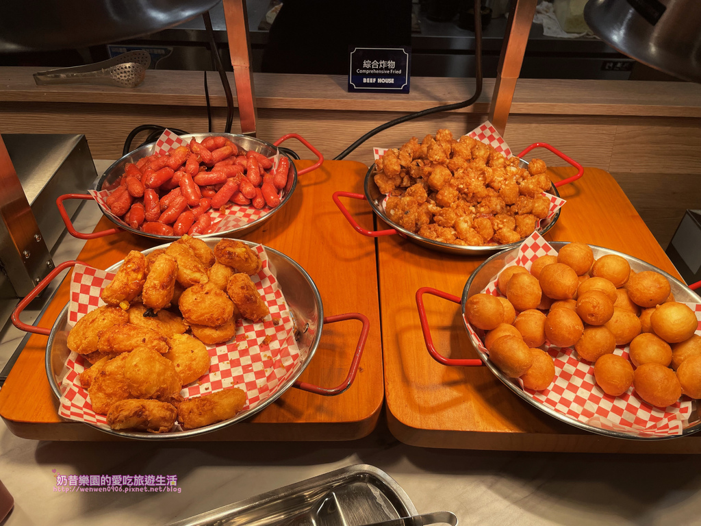 馬上來參觀一下自助吧,牛室的自助吧種類蠻豐富的,從披薩、炸物、蒸籠、熱炒、沙拉、飲料到冰品,該有的都有。