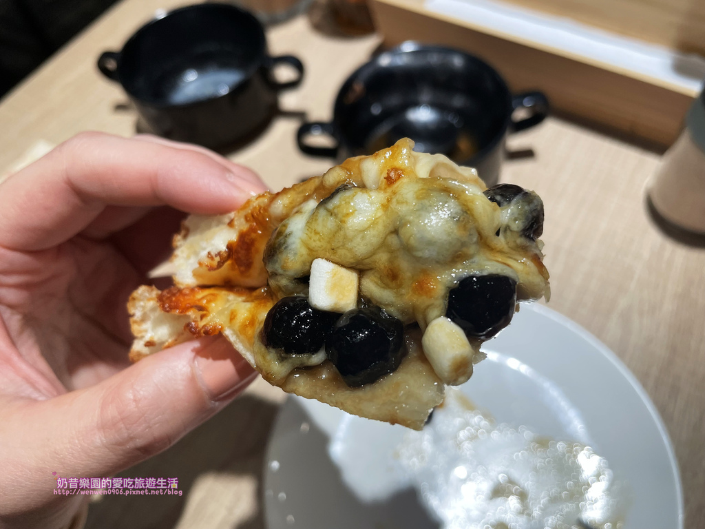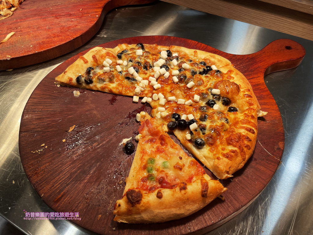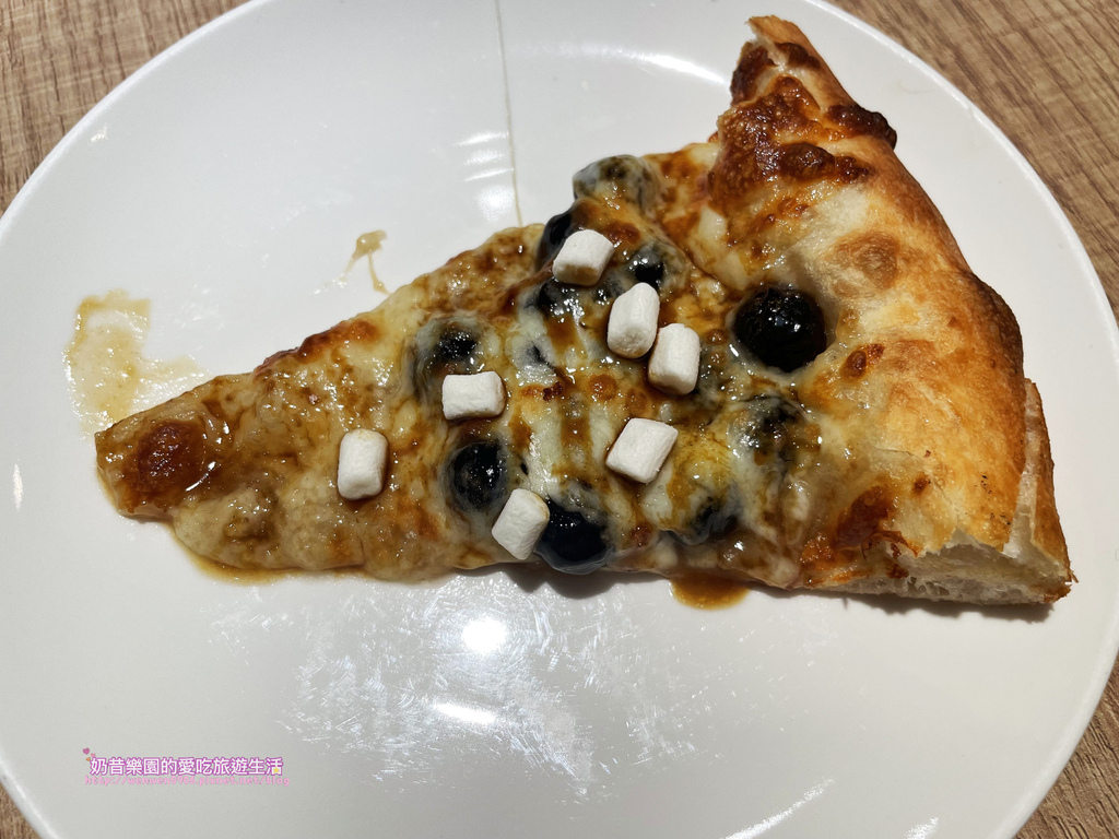 剛出爐的珍珠棉花糖披薩一定要拿!珍珠的軟嫩和棉花糖QQ的口感非常有層次,大人小孩都很喜歡。