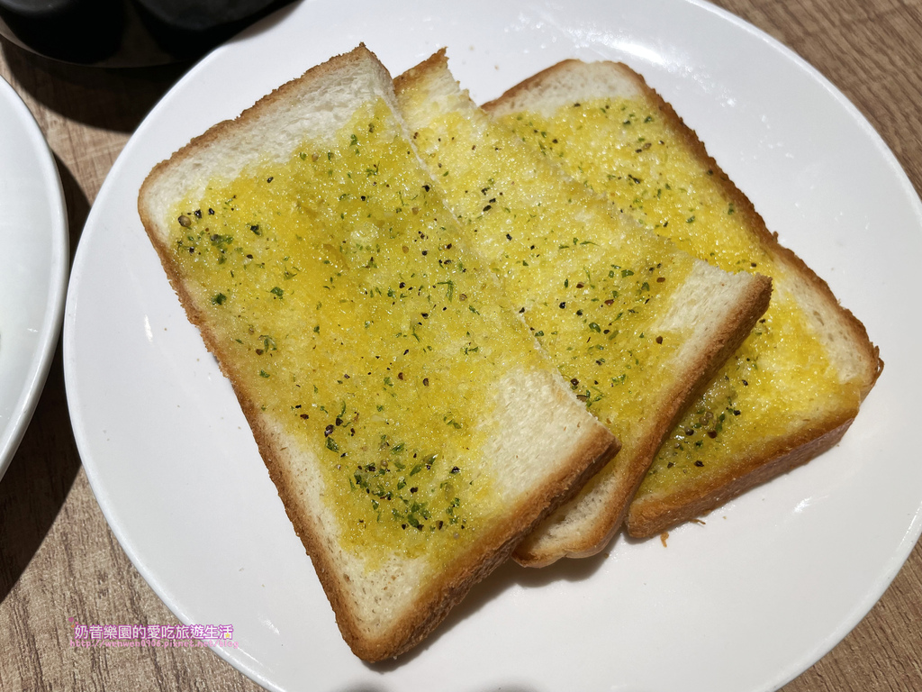 每次來牛排館我最期待的就是香蒜麵包,烤得酥脆的吐司,加上鹹香鹹香的大蒜奶油好過癮。